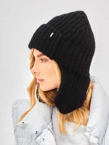 Шапка ушанка с интересной вязкой с заостренными ушками и макушкой. Ушапка на флисе